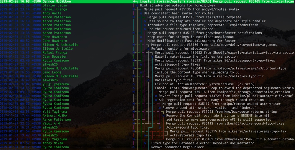 MacOSなら、$ brew install tigでインストールできる。$ tigで起動。コミット一覧が簡単に見られる。